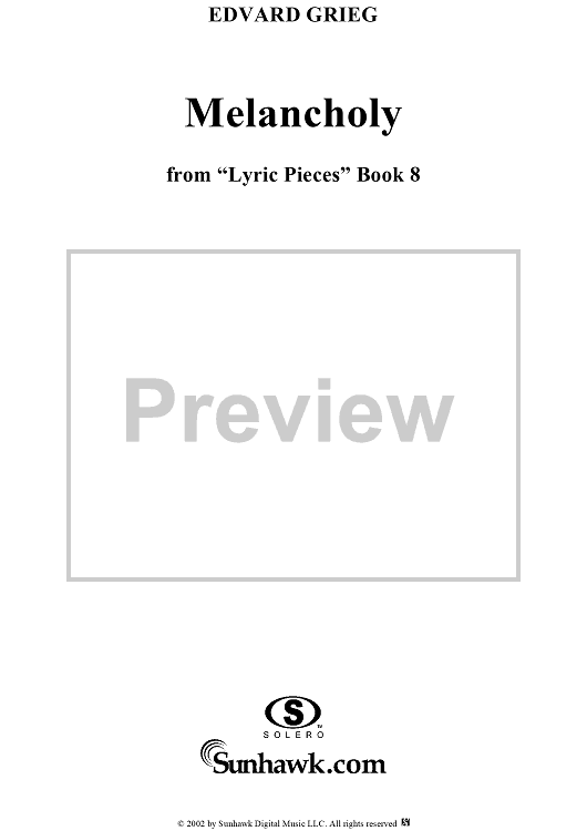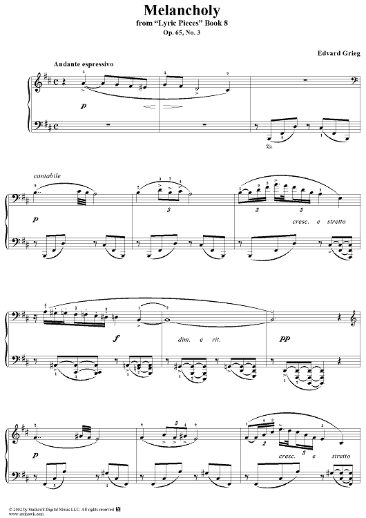 "Lyric Pieces Book 8, op. 65, no. 3: Melancholy" Sheet Music by Edvard Grieg
