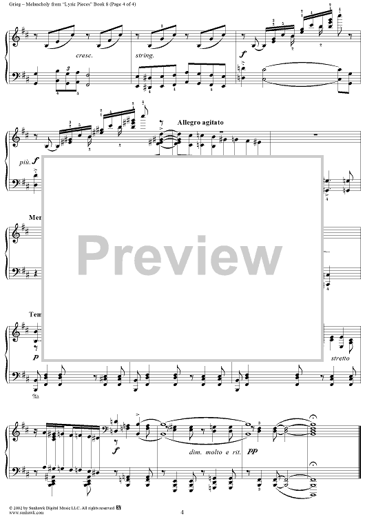Digital Sheet Music for Lyric Pieces Book 8, op. 65, no. 3: Melancholy by Edvard Grieg scored for Piano Solo; id:267948