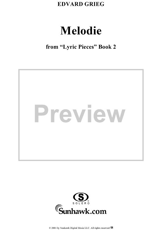 Digital Sheet Music for Melody, Op. 38, No. 3 by Edvard Grieg scored for Piano Solo; id:267902