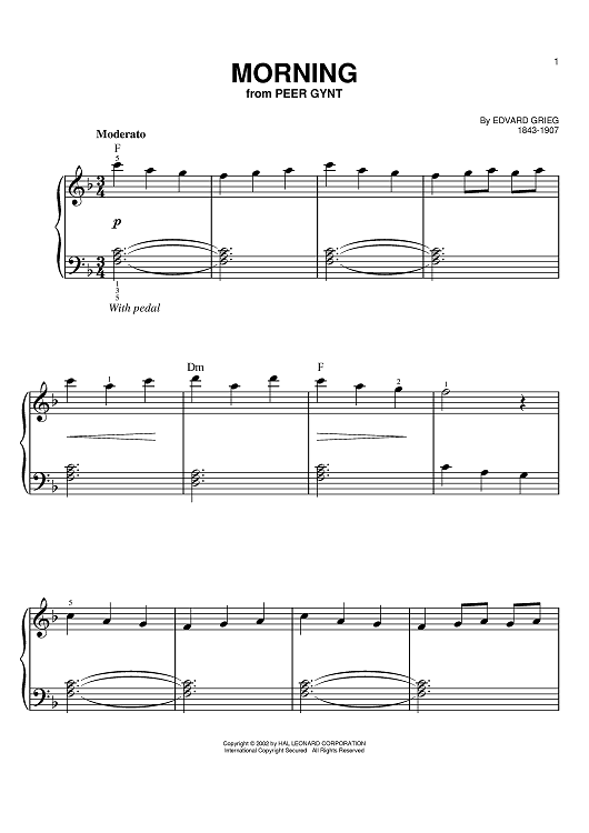 Digital Sheet Music for Morning by Edvard Grieg scored for Easy Piano; id:393692