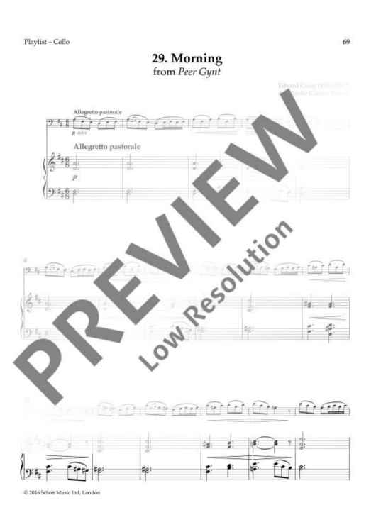 Digital Sheet Music for Morning by Edvard Grieg, Barrie Carson Turner scored for Cello And Piano; id:491167