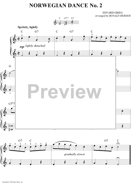 Digital Sheet Music for Norwegian Dance No. 2 by Edvard Grieg, Ronald Herder scored for Easy Piano; id:284889