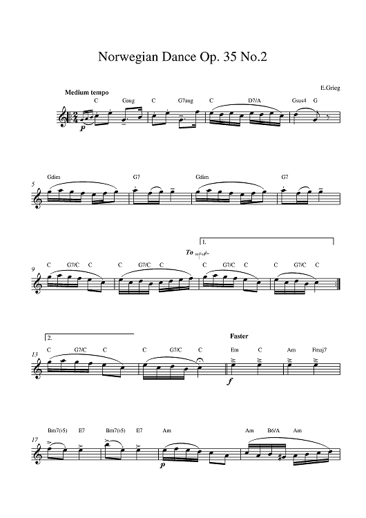 Digital Sheet Music for Norwegian Dance by Edvard Grieg scored for Lead Sheet; id:380941