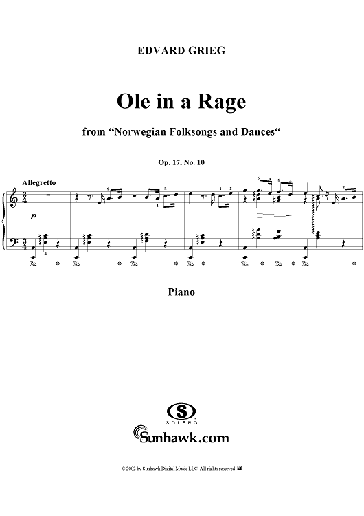Digital Sheet Music for Norwegian Folksongs and Dances Op.17 No.10, Ole in a rage by Edvard Grieg scored for Piano Solo; id:267911
