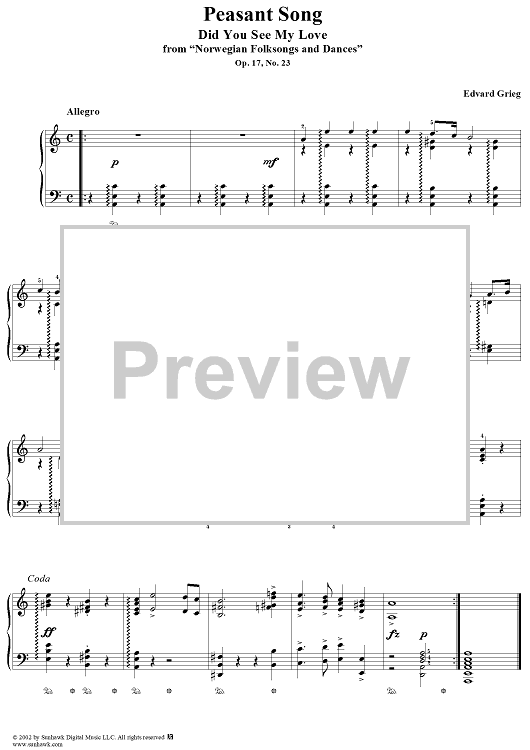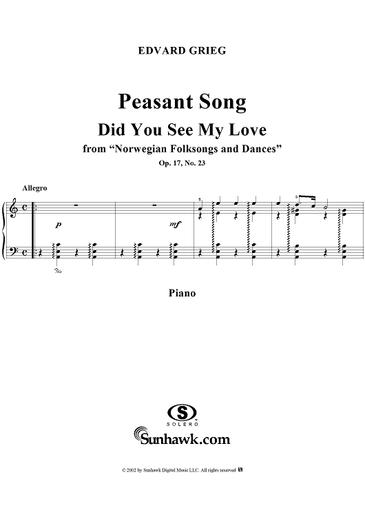 "Norwegian Folksongs and Dances Op.17 No.23, Peasant song (Did you see my love)" Sheet Music by Edvard Grieg