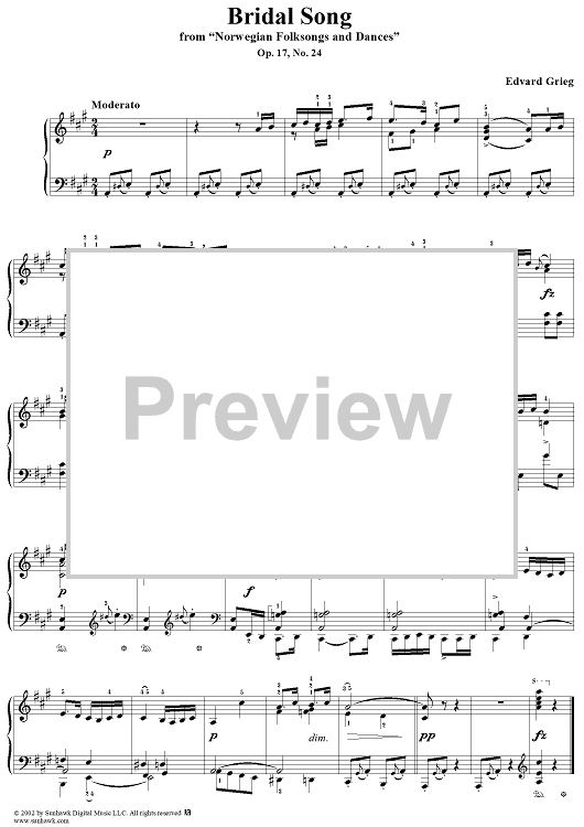 "Norwegian Folksongs and Dances Op.17 No.24, Bridal Song" Sheet Music by Edvard Grieg