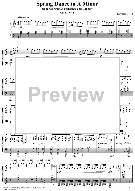 Digital Sheet Music for Norwegian Folksongs and Dances Op.17 No.3, Spring Dance in A minor by Edvard Grieg scored for Piano Solo; id:267898