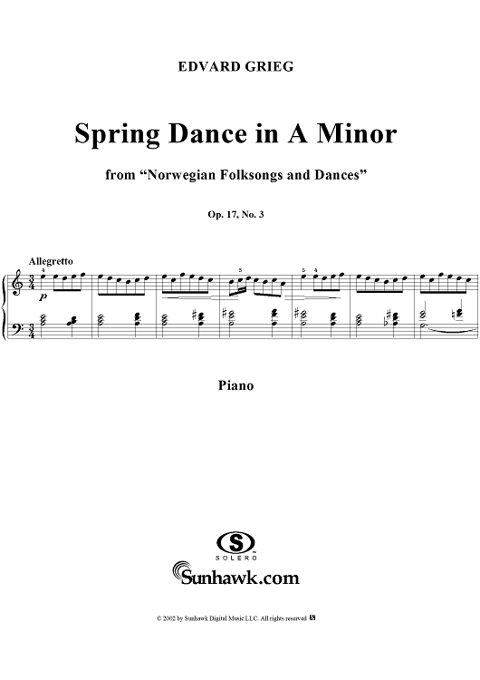 "Norwegian Folksongs and Dances Op.17 No.3, Spring Dance in A minor" Sheet Music by Edvard Grieg