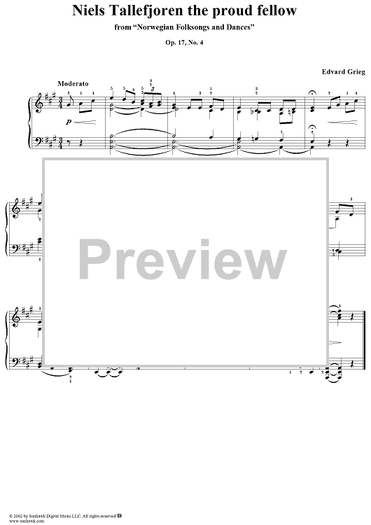 Digital Sheet Music for Norwegian Folksongs and Dances Op.17 No.4, Niels Tallefjoren the proud fellow by Edvard Grieg scored for Piano Solo; id:267901