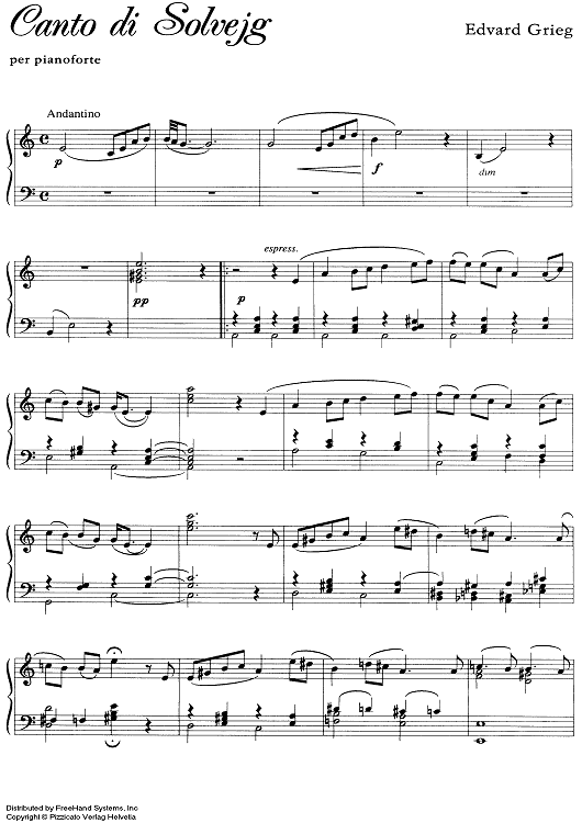 Digital Sheet Music for Peer Gynt Op.23 No.11 - Solvejgs sang (Solvejg's Lied) by Edvard Grieg scored for Piano Solo; id:329071