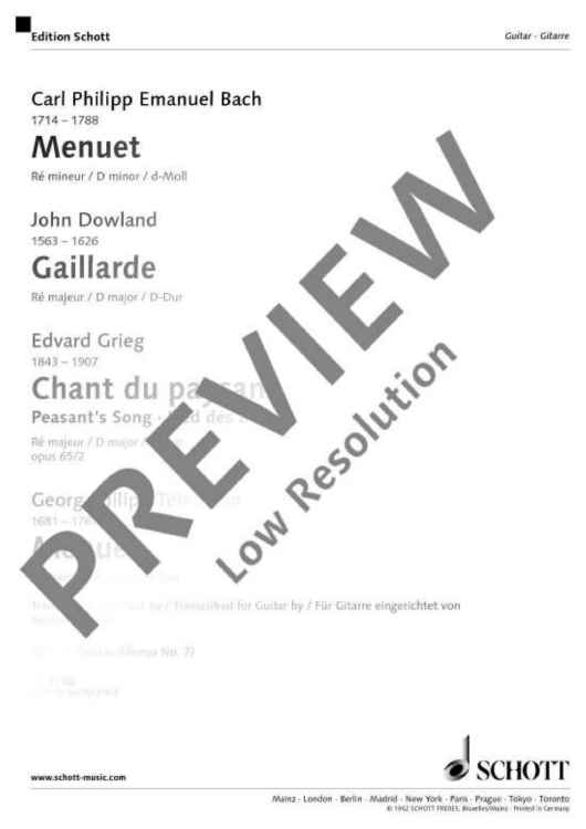 Digital Sheet Music for Pieces for Guitar by Edvard Grieg, Georg Philipp Telemann, John Dowland, Carl Philipp Emanuel Bach scored for Guitar; id:476361