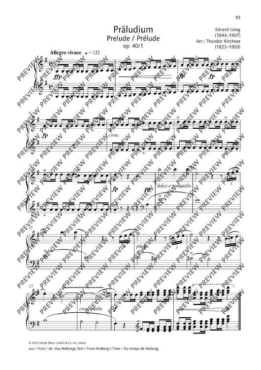 Digital Sheet Music for Prelude by Edvard Grieg, Theodor Kirchner scored for Piano (4 Hands); id:497320