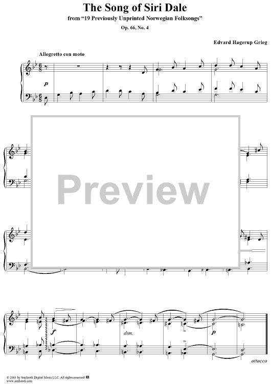 Digital Sheet Music for The Song of Siri Dale by Edvard Grieg scored for Piano Solo; id:268100