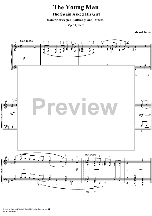 Digital Sheet Music for The Young Man by Edvard Grieg scored for Piano Solo; id:284588