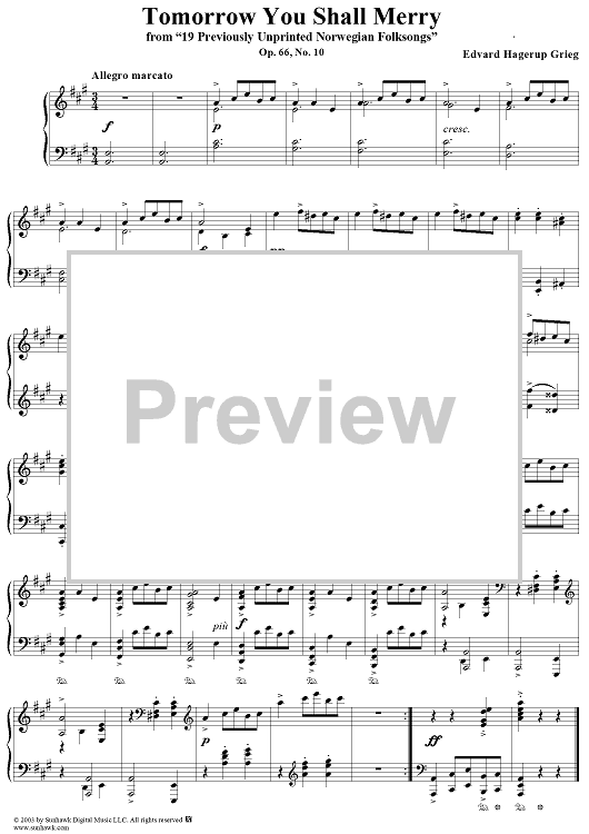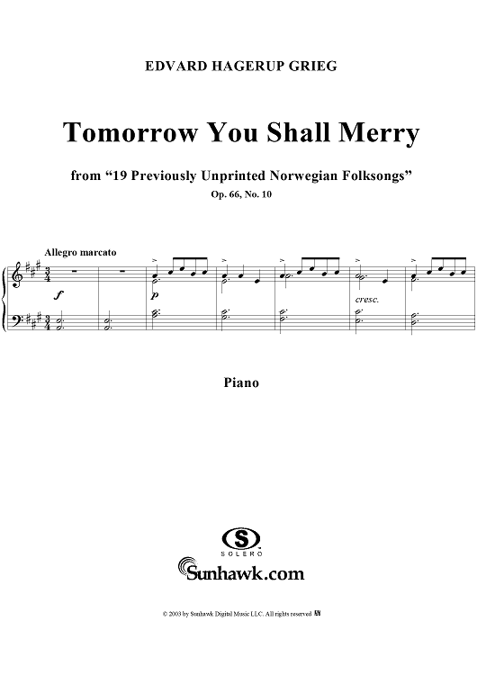 Digital Sheet Music for Tomorrow and You Shall Be Merry by Edvard Grieg scored for Piano Solo; id:267818