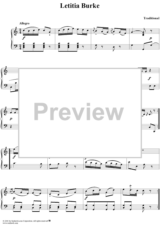 Digital Sheet Music for Letitia Burke by , Edward Bunting, Traditional scored for Piano Solo; id:260503