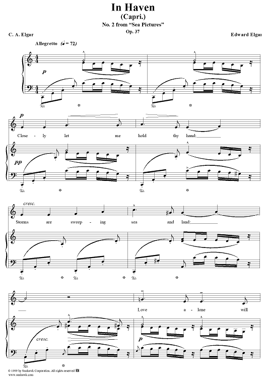 Digital Sheet Music for In Haven (Capri.) - No. 2 from "Sea Pictures" Op. 37 by C. A. Elgar, Edward Elgar scored for Voice/Piano; id:270355