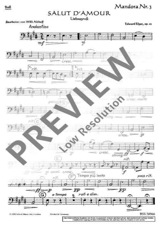 Digital Sheet Music for Salut d'Amour - Bass by Edward Elgar, Willi Althoff scored for Mandoline Quartet Or Mandolin Orchestras; id:487902