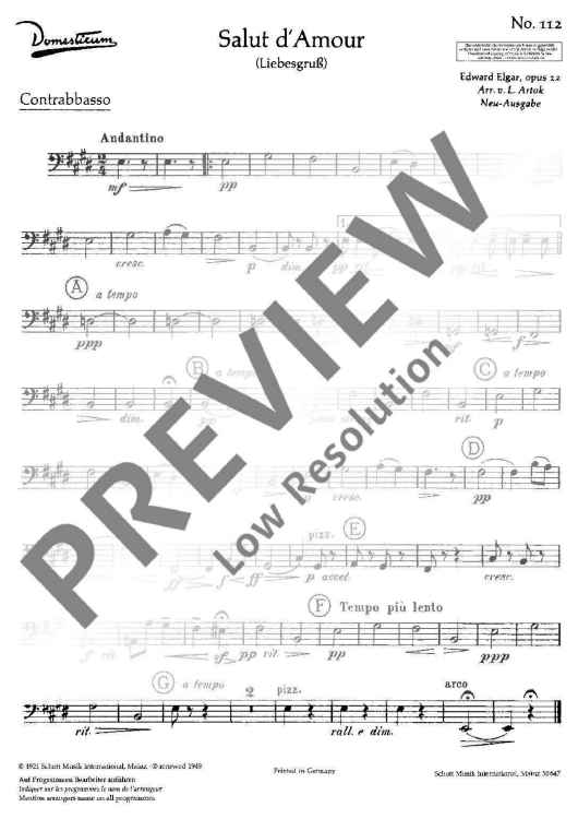 Digital Sheet Music for Salut d'Amour - Double Bass by Edward Elgar scored for Salon Orchestra; id:488047