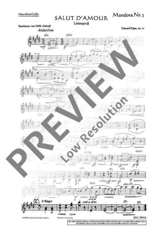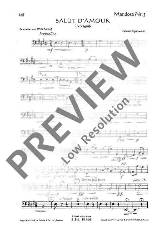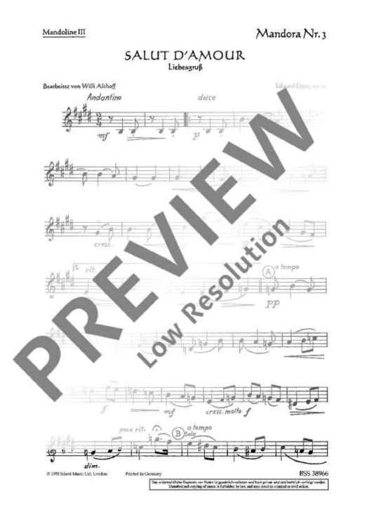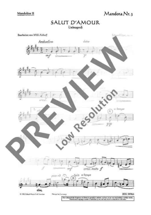 Digital Sheet Music for Salut d'Amour - Set of Parts by Edward Elgar, Willi Althoff scored for Mandolines-quartett Or Mandolin Orchestras; id:487896