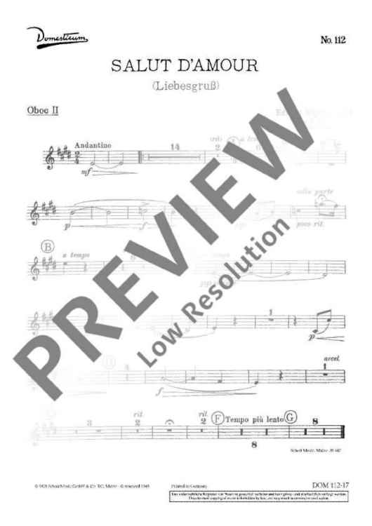 "Salut d'Amour - Set of Parts" Sheet Music by Edward Elgar
