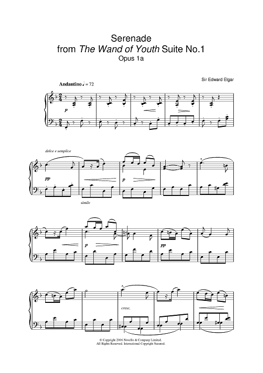 Digital Sheet Music for Serenade From The Wand Of Youth Suite No 1 Op 1a by Edward Elgar scored for Piano; id:395957