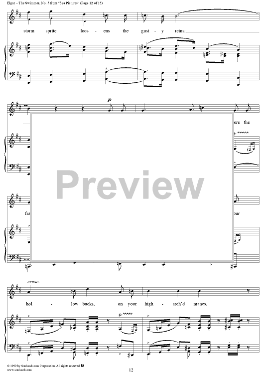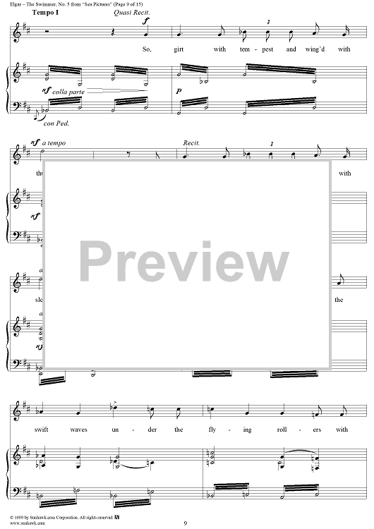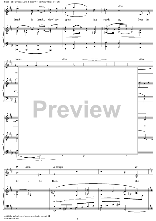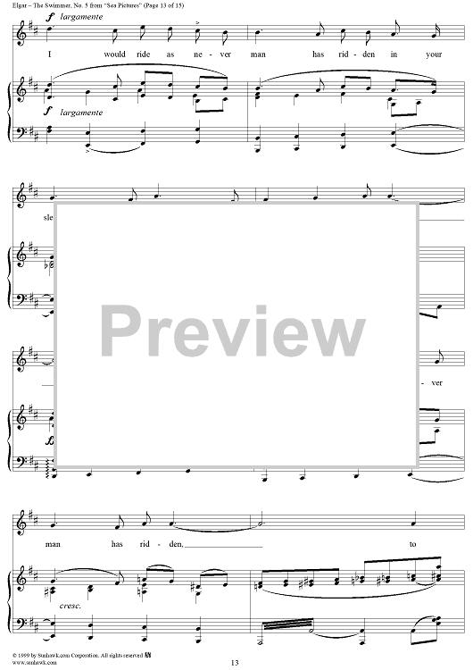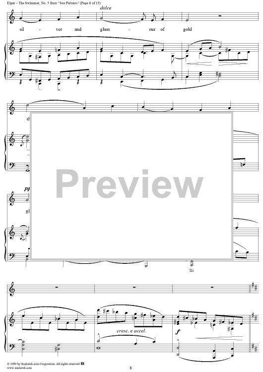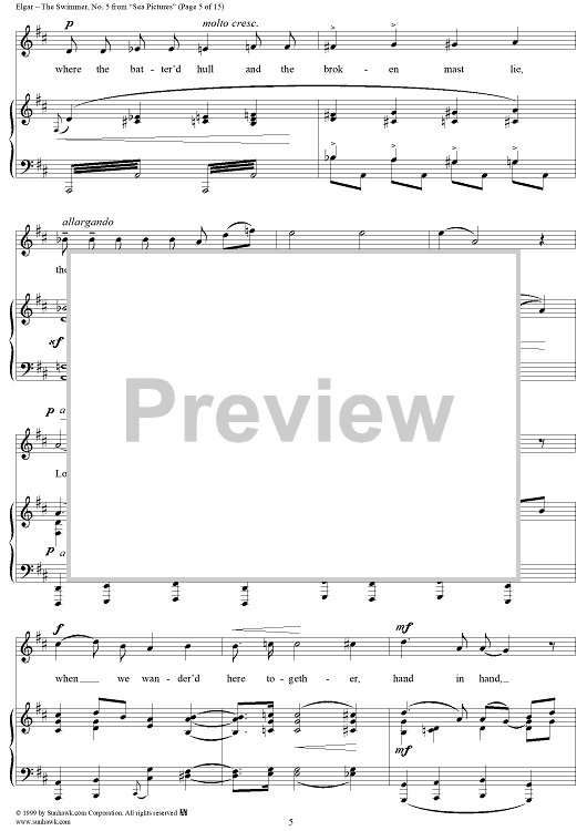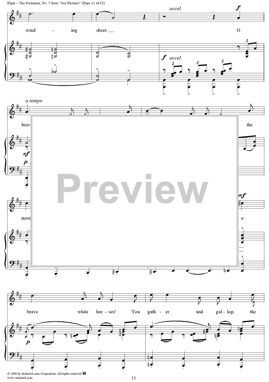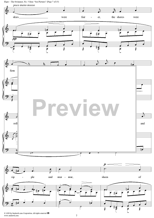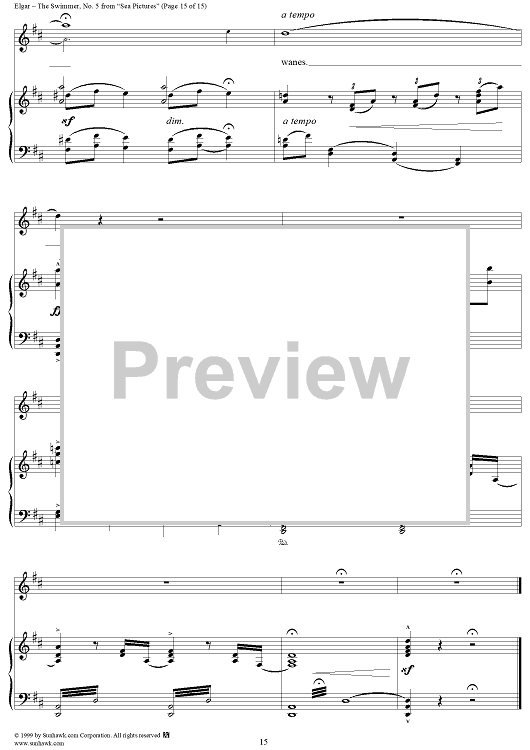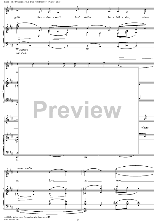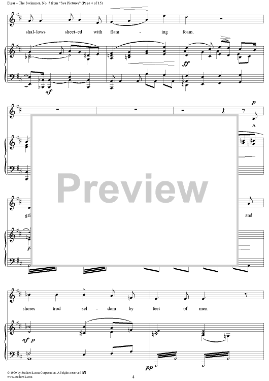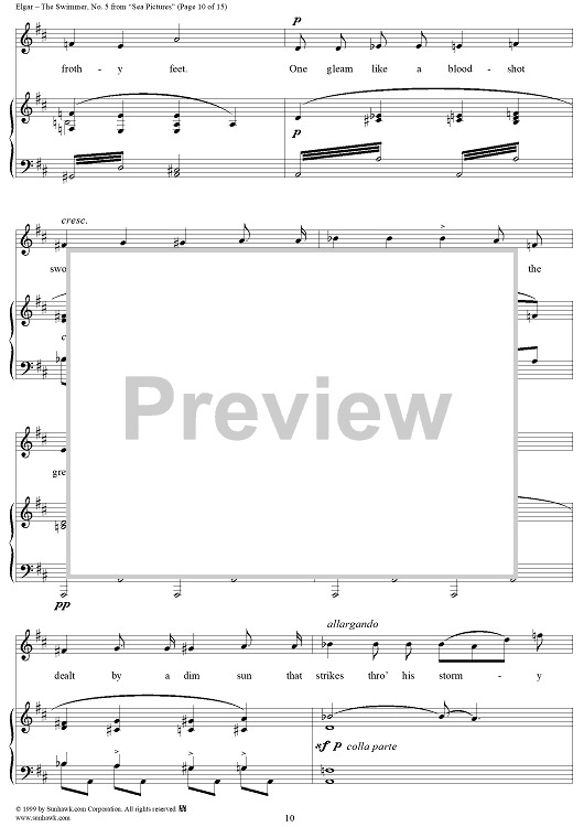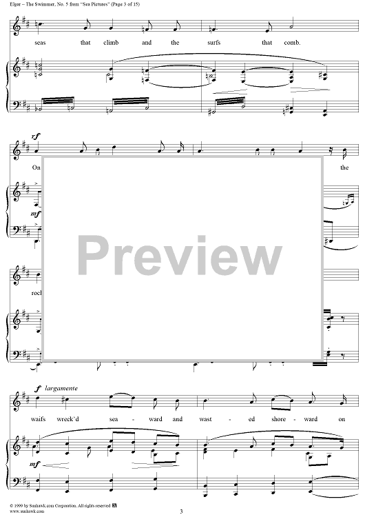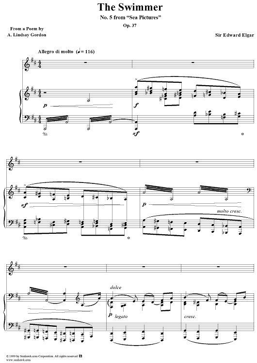 Digital Sheet Music for The Swimmer - No. 5 from "Sea Pictures" Op. 37 by A. Lindsay Gordon, Edward Elgar scored for Voice/Piano; id:270358