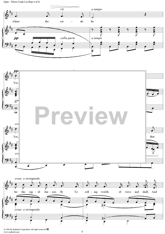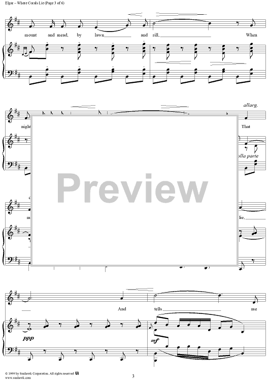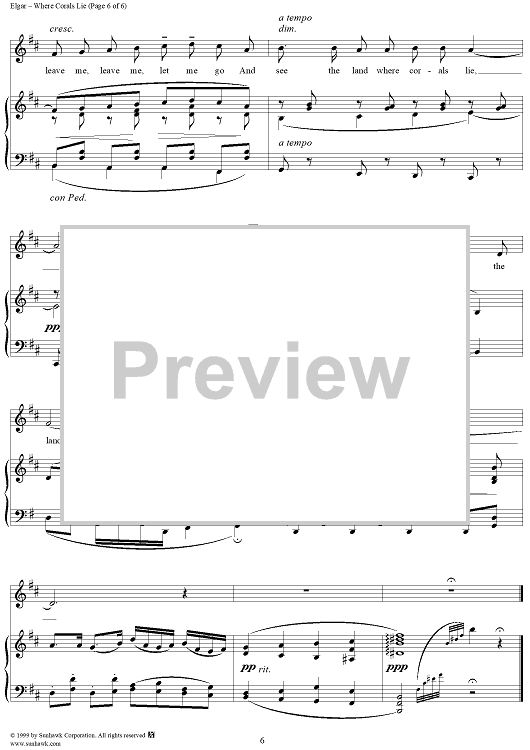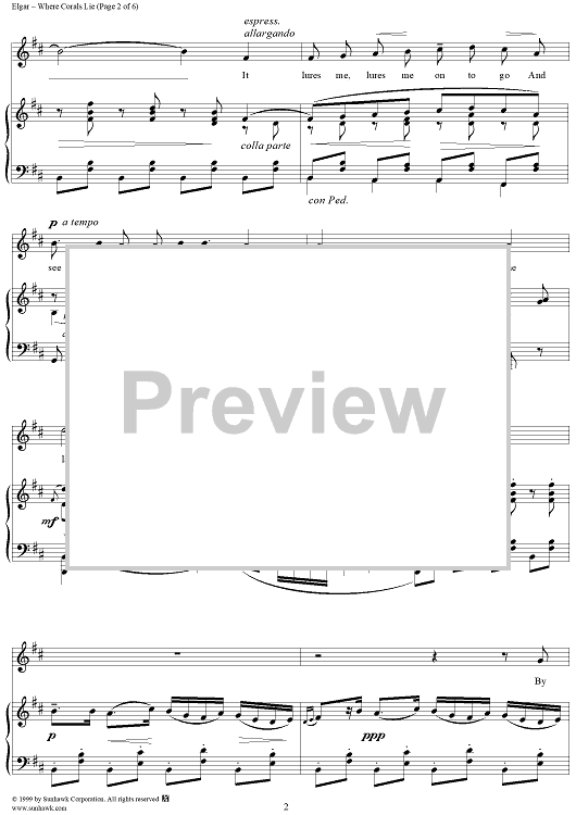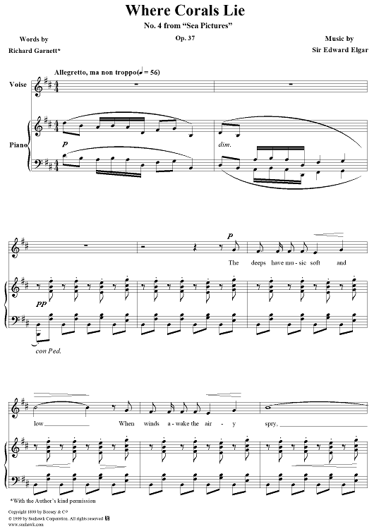 Digital Sheet Music for Where Corals Lie - No. 4 from "Sea Pictures" Op. 37 by Richard Garnett, Edward Elgar scored for Voice/Piano; id:270356