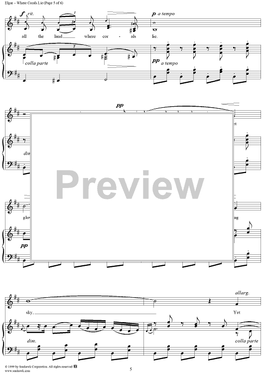 "Where Corals Lie - No. 4 from "Sea Pictures" Op. 37" Sheet Music by Edward Elgar