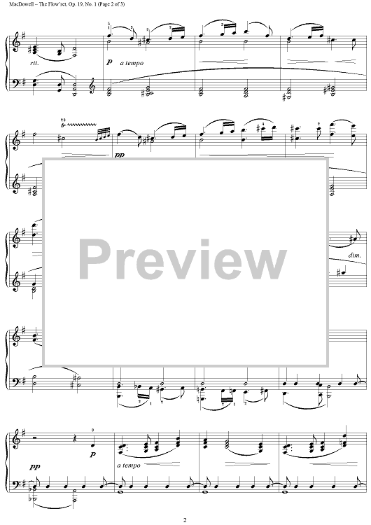Digital Sheet Music for The Flow'ret from "Forest Idyls" by Edward MacDowell scored for Piano Solo; id:251801