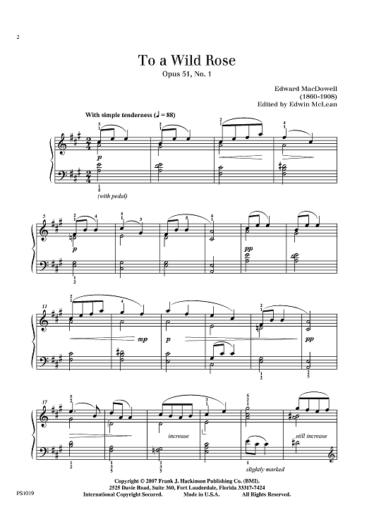 "To a Wild Rose, Op. 51, No. 1" Sheet Music by Edward MacDowell