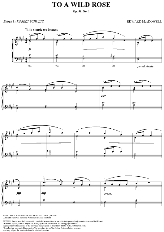 Digital Sheet Music for To a Wild Rose by Edward MacDowell scored for Easy Piano; id:284707