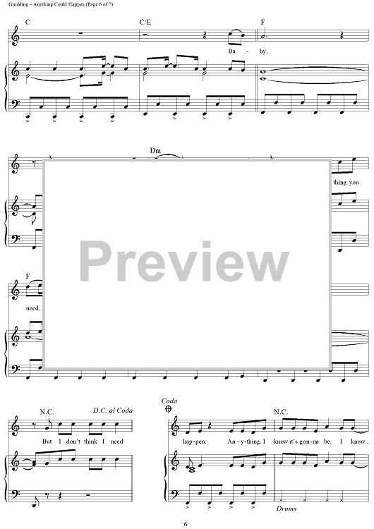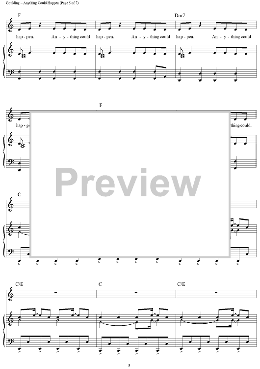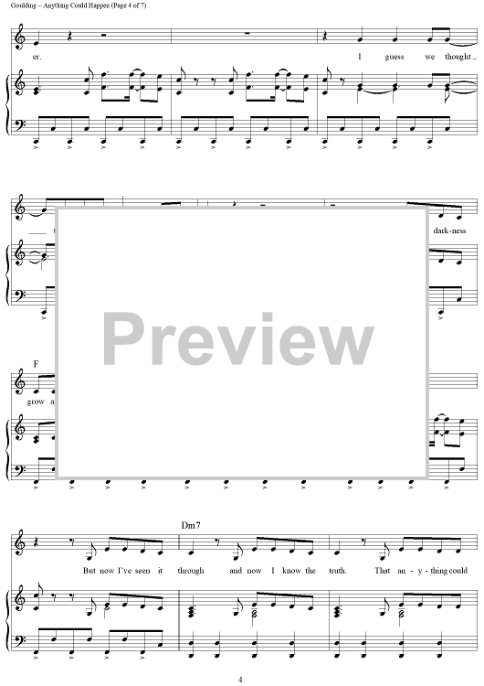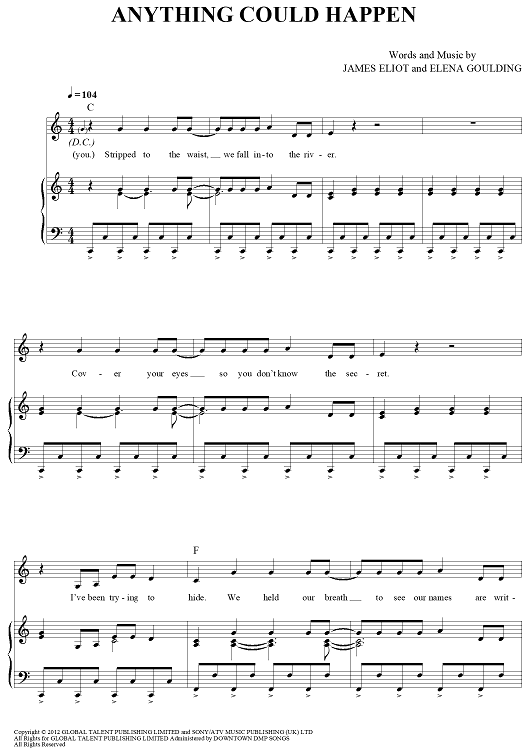 Digital Sheet Music for Anything Could Happen by James Eliot, Ellie Goulding scored for Piano/Vocal/Chords; id:433044