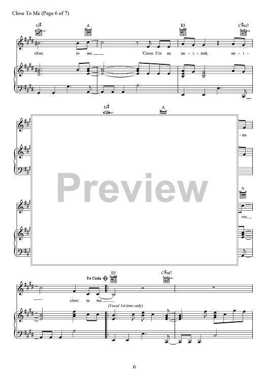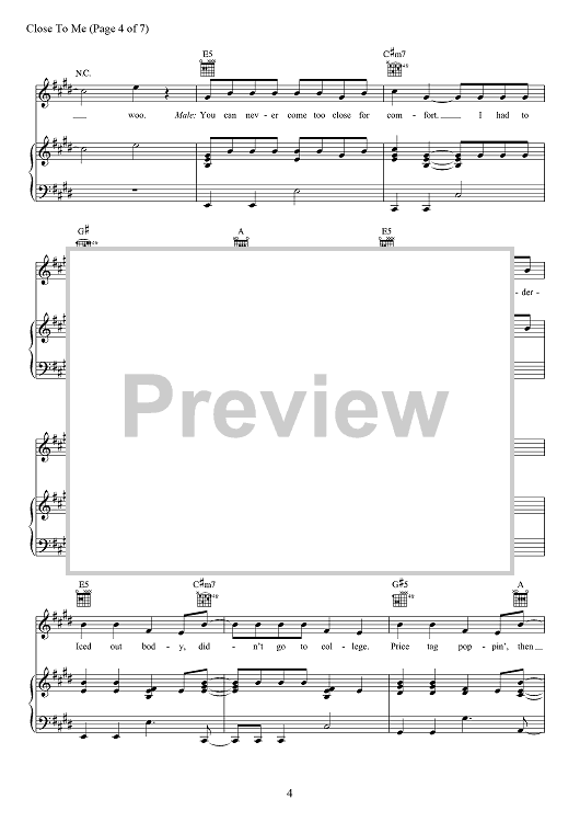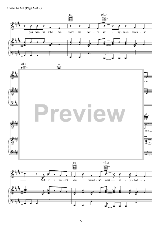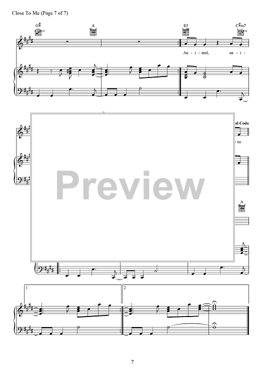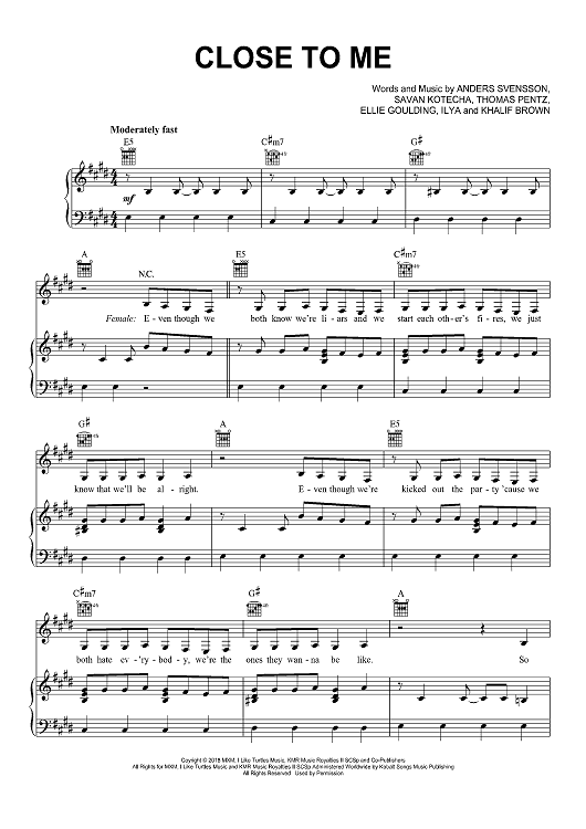 Digital Sheet Music for Close To Me by Peter Svensson, Savan Kotecha, Ellie Goulding, Thomas Pentz, Khalif Brown scored for Piano/Vocal/Chords; id:466849