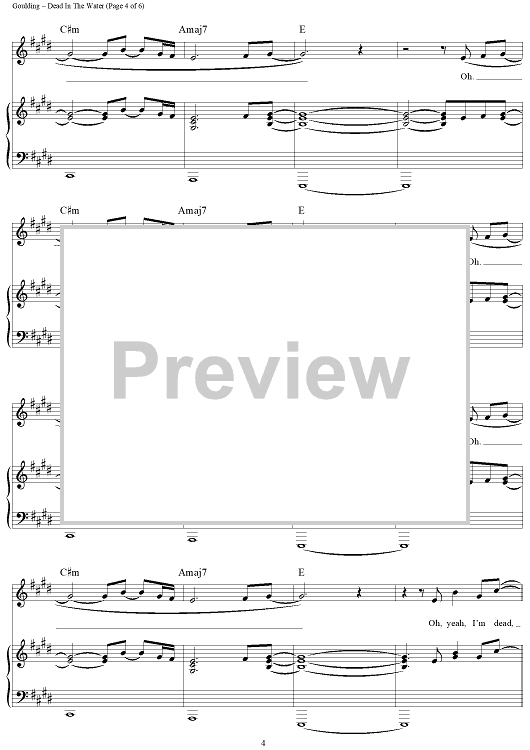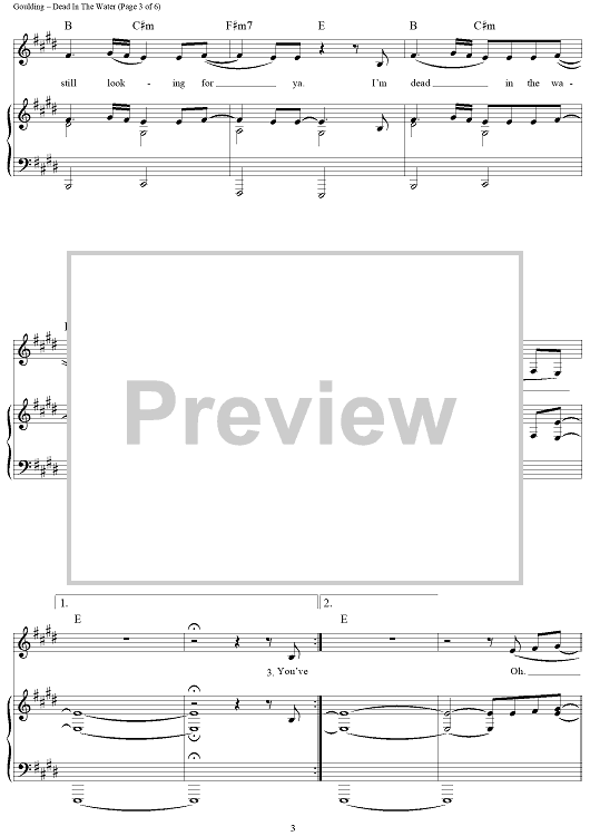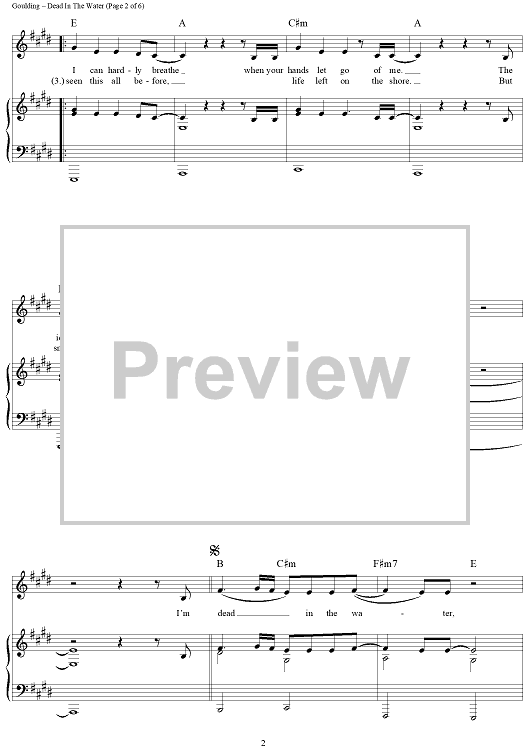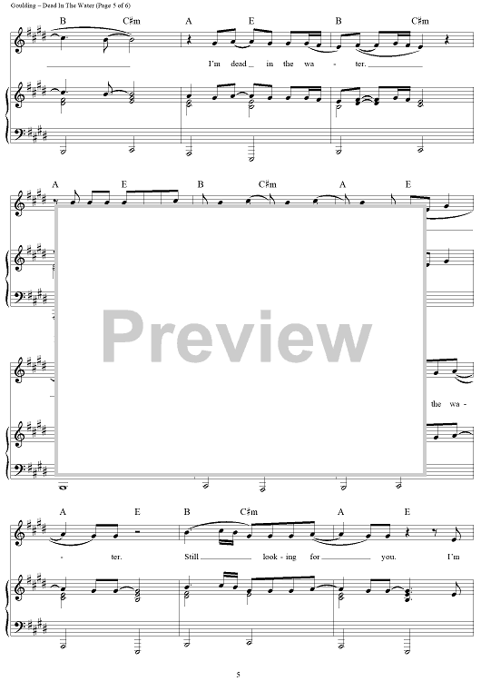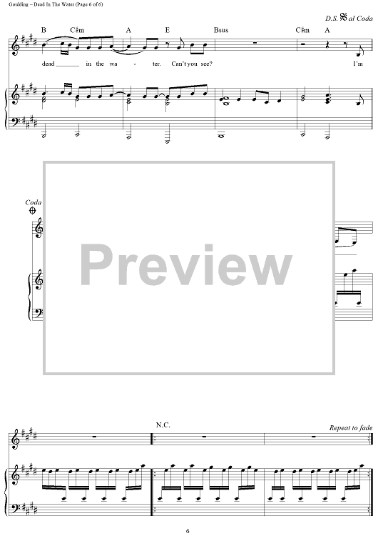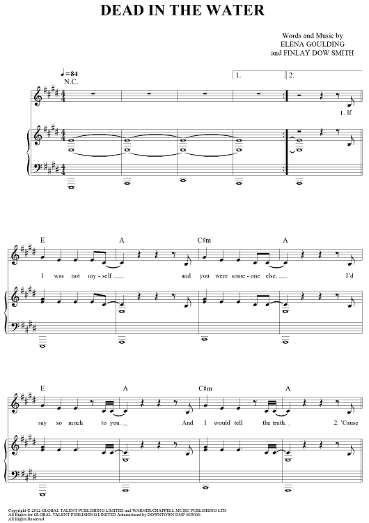 Digital Sheet Music for Dead In The Water by Ellie Goulding, Finlay Dow Smith scored for Piano/Vocal/Chords; id:442905