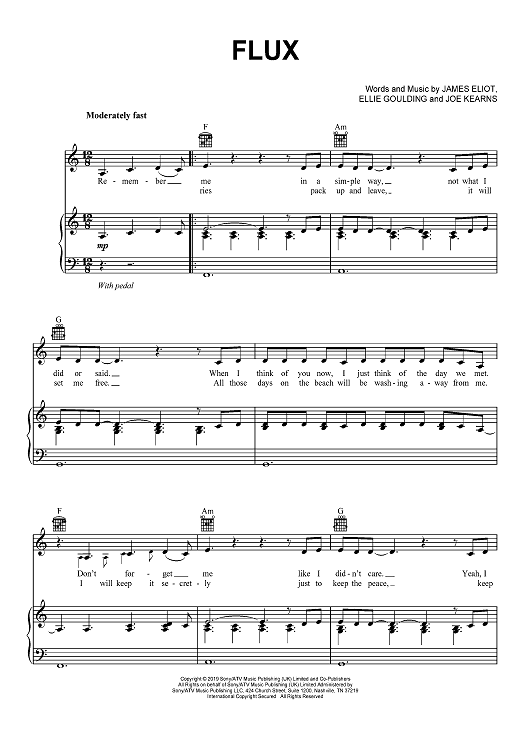 Digital Sheet Music for Flux by James Eliot, Ellie Goulding, Joe Kearns scored for Piano/Vocal/Chords; id:467462
