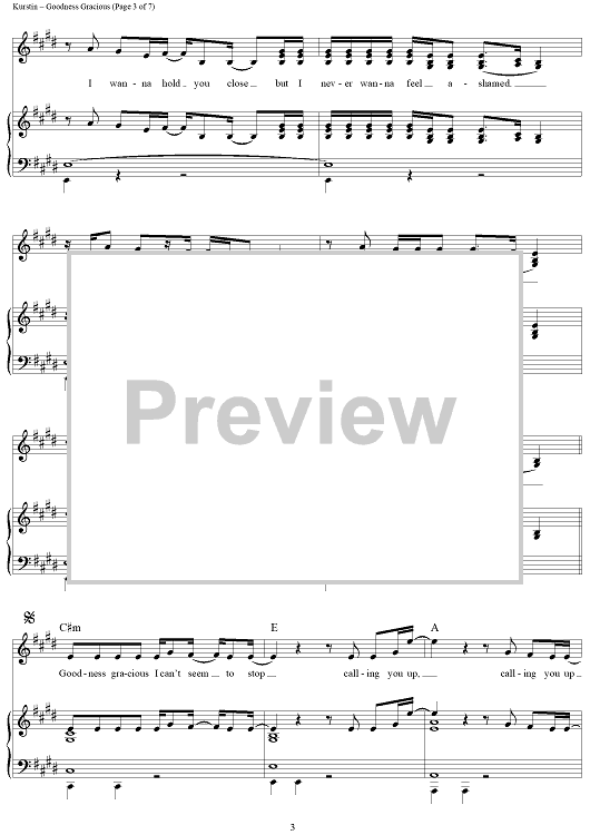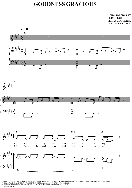 Digital Sheet Music for Goodness Gracious by Greg Kurstin, Ellie Goulding, Nate Ruess scored for Piano/Vocal/Chords; id:442906