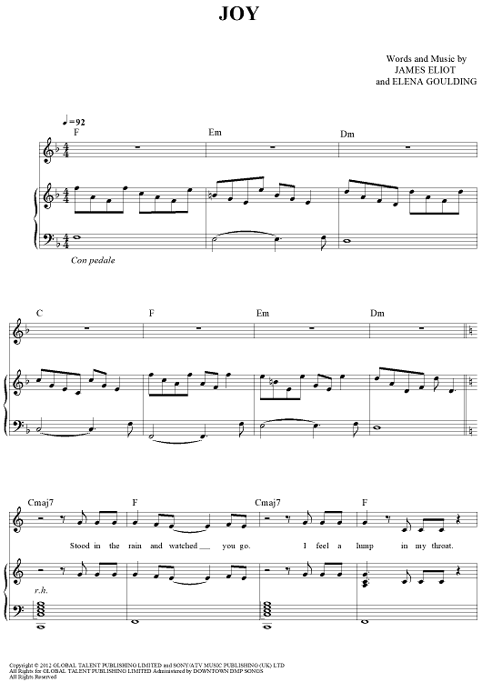 Digital Sheet Music for Joy by James Eliot, Ellie Goulding scored for Piano/Vocal/Chords; id:442909