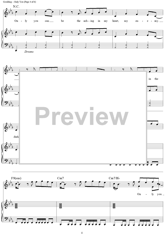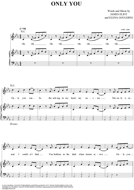 Digital Sheet Music for Only You by James Eliot, Ellie Goulding scored for Piano/Vocal/Chords; id:441792