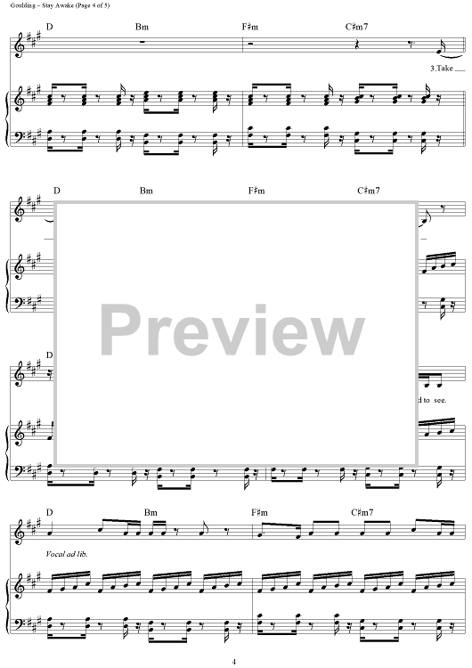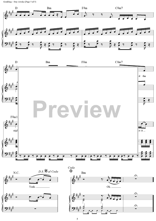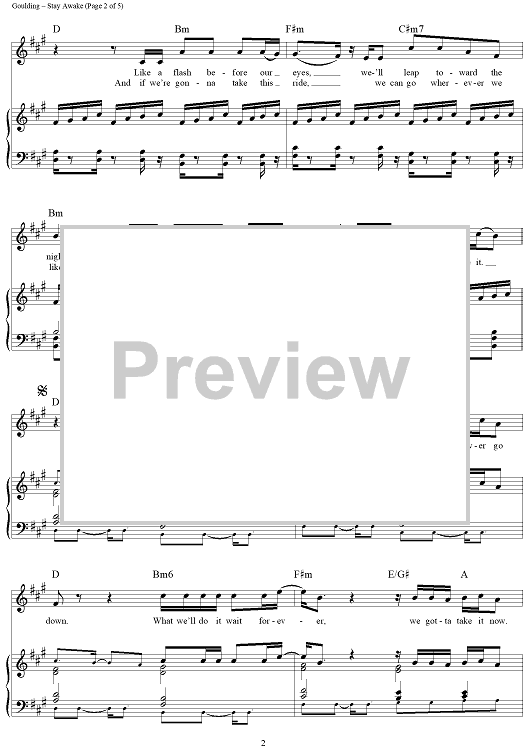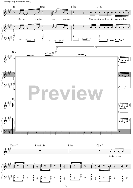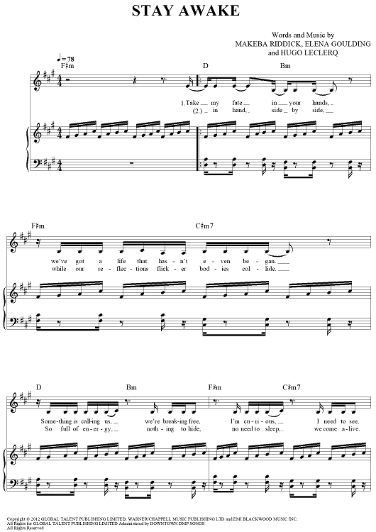 Digital Sheet Music for Stay Awake by Makeba Riddick, Ellie Goulding, Hugo Leclerq scored for Piano/Vocal/Chords; id:443746