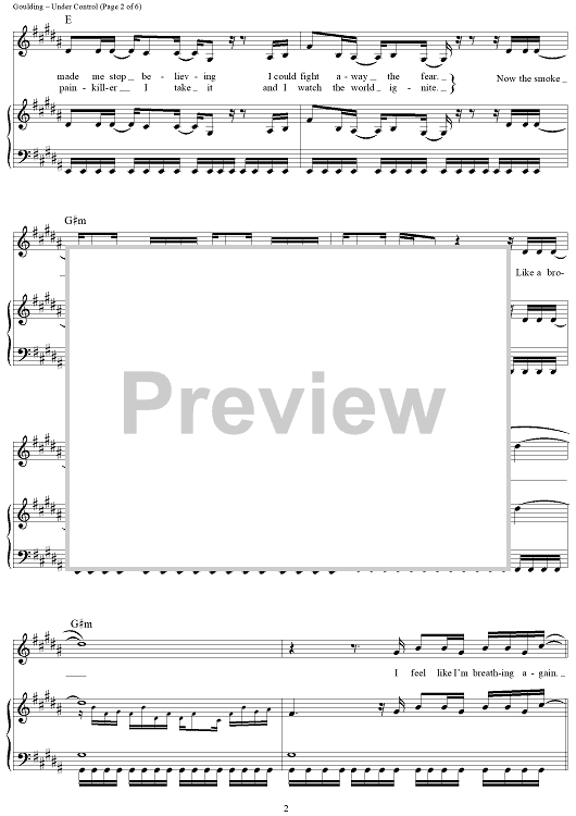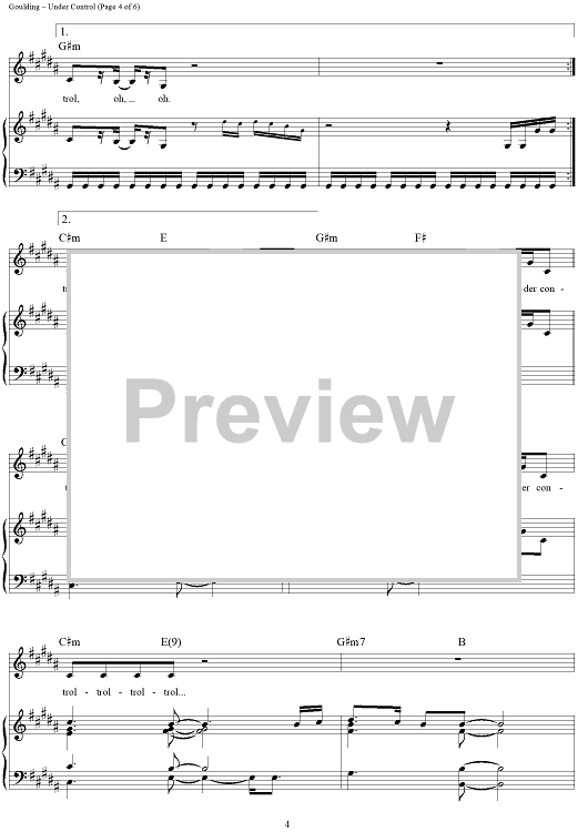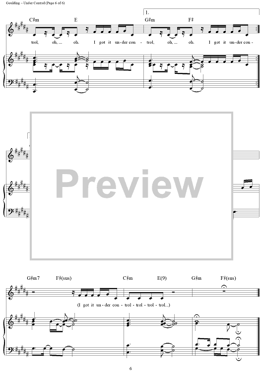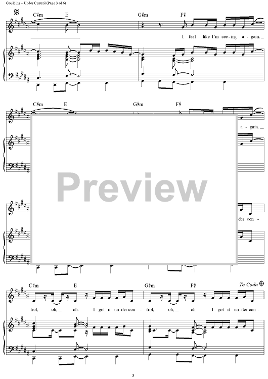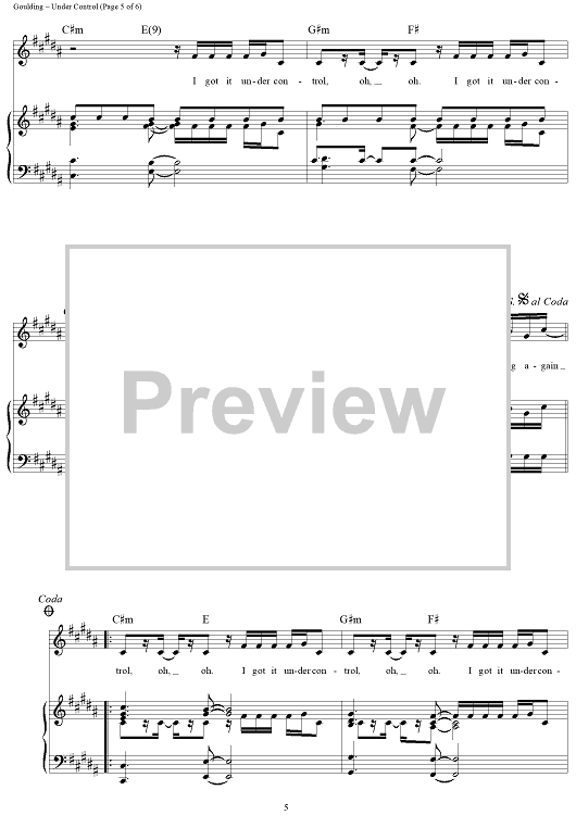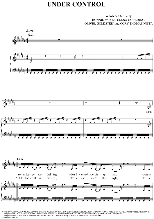 Digital Sheet Music for Under Control by Oliver Goldstein, Ellie Goulding, Bonnie McKee, Cory Thomas Nitta scored for Piano/Vocal/Chords; id:443747