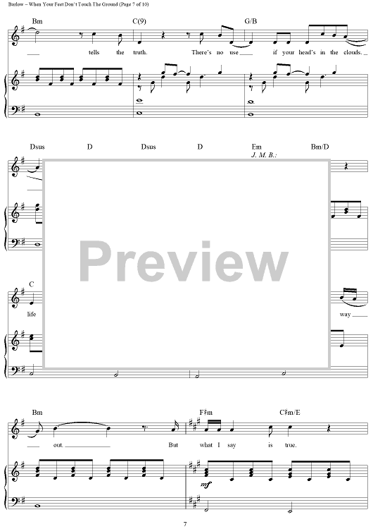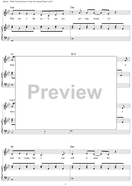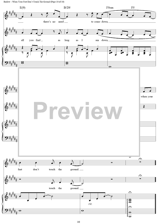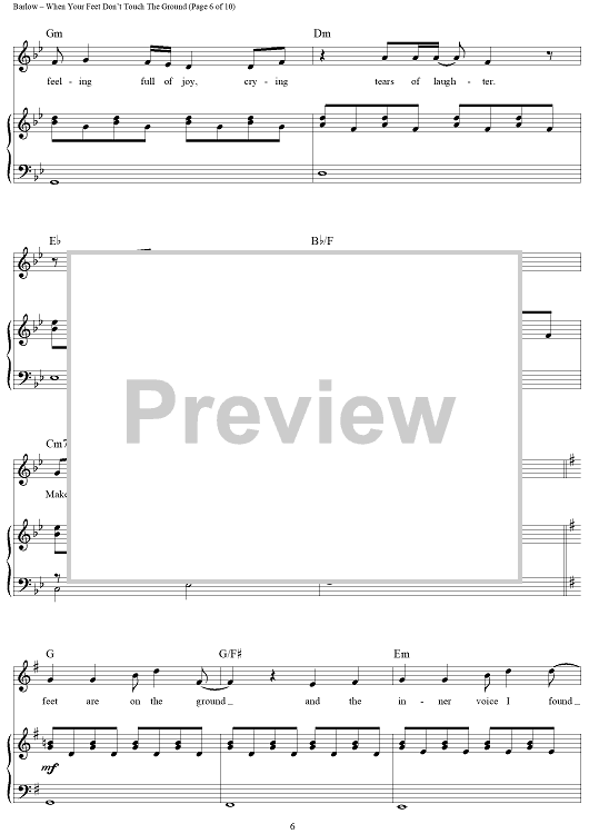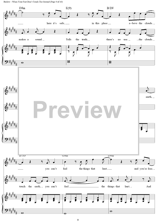 Digital Sheet Music for When Your Feet Don't Touch The Ground by Gary Barlow, Eliot Kennedy, Ellie Goulding scored for Piano/Vocal/Chords; id:452151