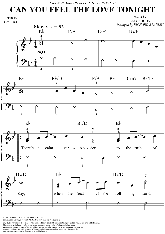 "Can You Feel The Love Tonight" Sheet Music by Elton John