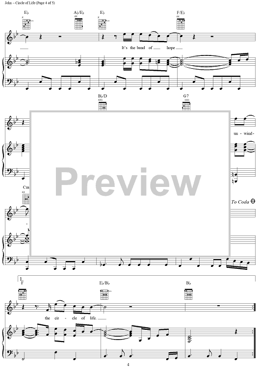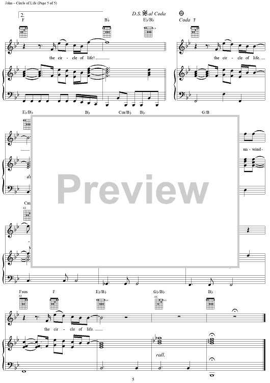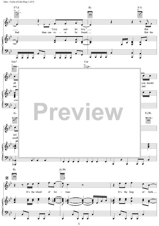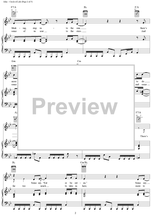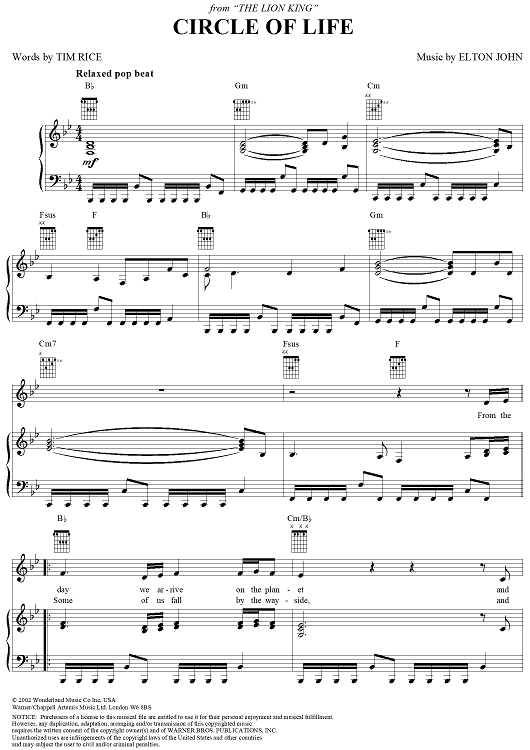 Digital Sheet Music for Circle Of Life by Elton John, Tim Rice scored for Piano/Vocal/Chords; id:297517