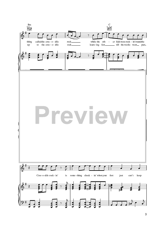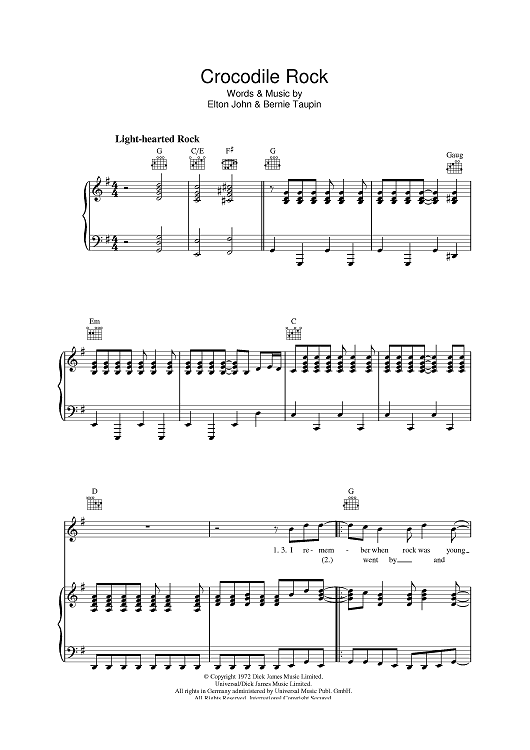 Digital Sheet Music for Crocodile Rock by Elton John, Bernie Taupin scored for Piano/Vocal/Chords; id:401224