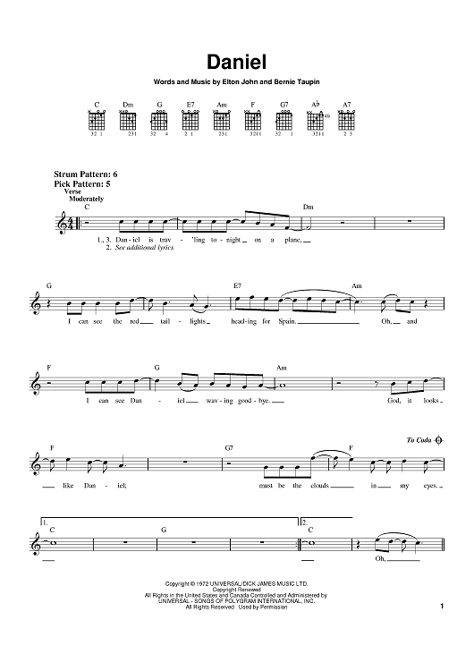 "Daniel" Sheet Music by Elton John