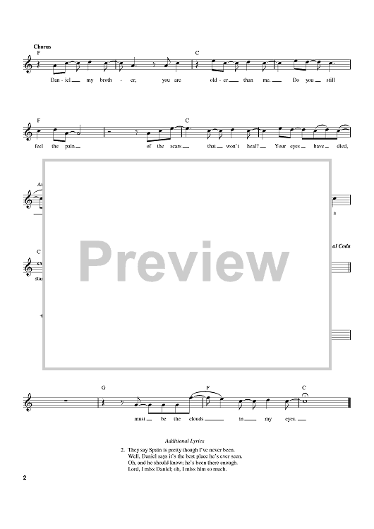 Digital Sheet Music for Daniel by Elton John, Bernie Taupin scored for Lead Sheet; id:388293