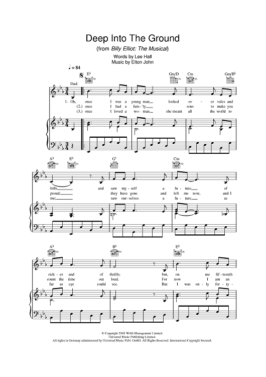 Digital Sheet Music for Deep Into The Ground by Elton John, Lee Hall scored for Piano/Vocal/Chords; id:398792