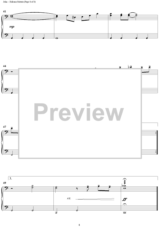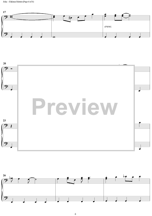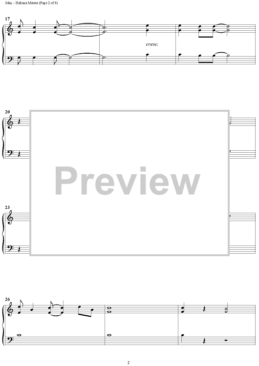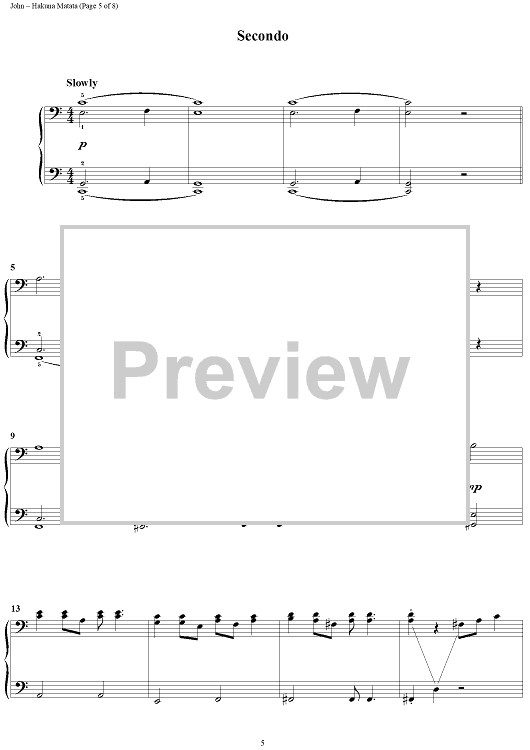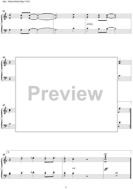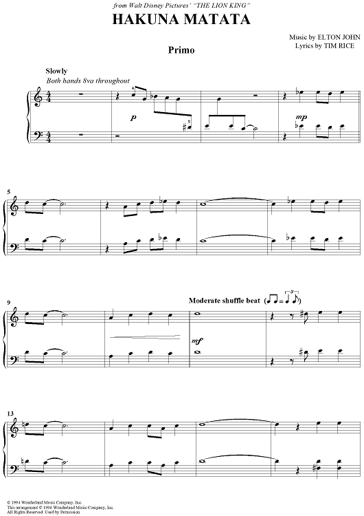 Digital Sheet Music for Hakuna Matata by Elton John, Tim Rice scored for 1 Piano, 4 Hands; id:395437