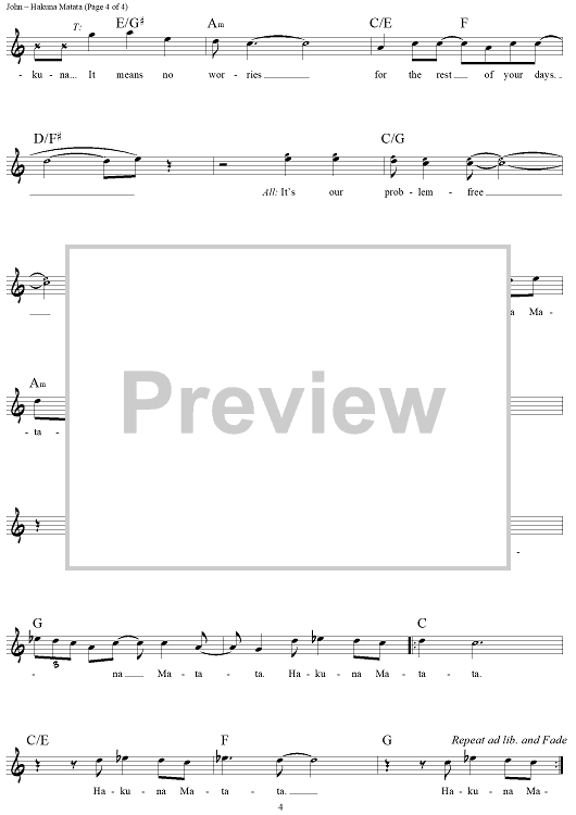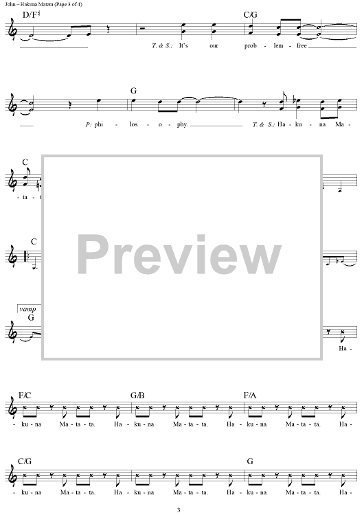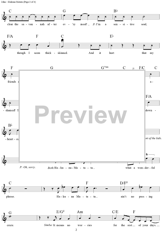 Digital Sheet Music for Hakuna Matata by Elton John, Tim Rice, Fred Kern scored for Lead Sheet; id:441352